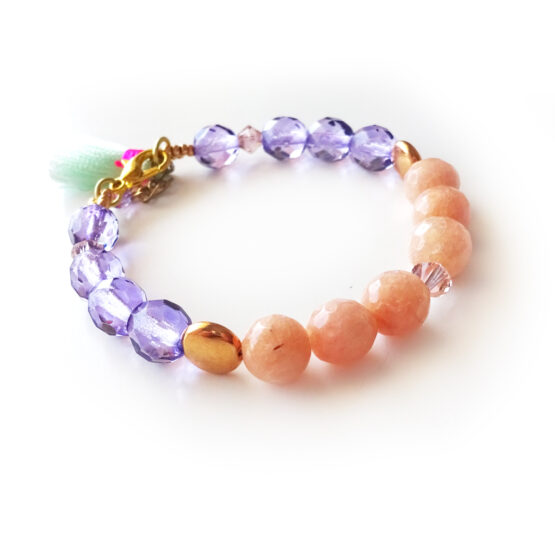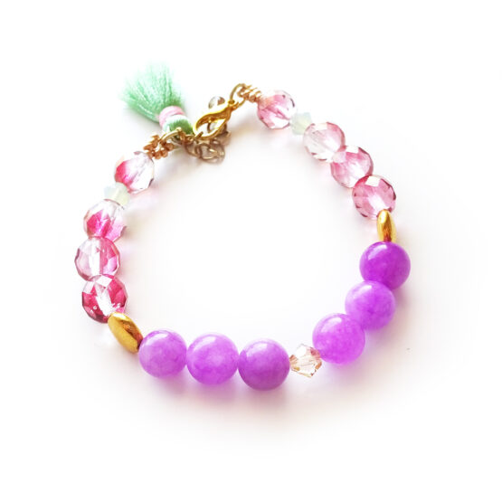 Maravillosas Pulseras Afrodita creadas con piedras semipreciosas de ágatas facetadas teñidas en lila y caramelo! Todas combinan con cristalitos de swarovski y otras cuentas de cristal de bohemia y coloridos tassels! Perfectas para tu día a día o para dar un toque especial a tus vestidos favoritos!!