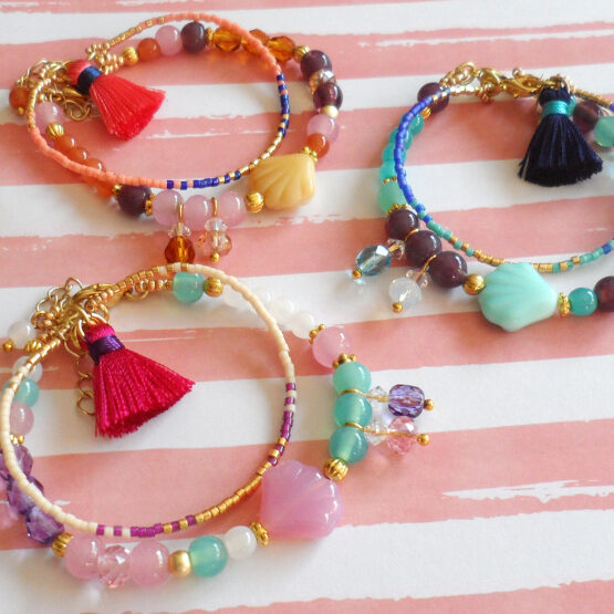 | PULSERA TESOROS DE SIRENA | Concha Crema, Concha Rosa, Concha Turquesa |